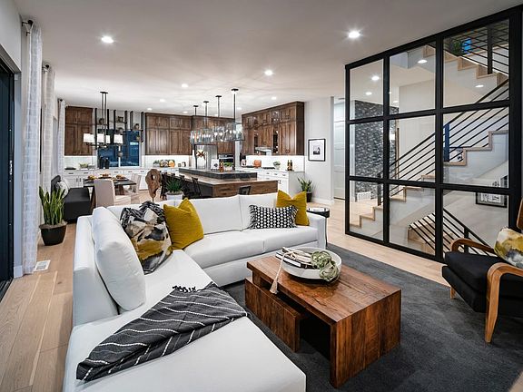 Stylish contemporary family living. The Cutler's inviting covered entry and foyer open immediately onto the bright flex space, revealing views of the spacious great room, casual dining area, and desirable luxury outdoor living space beyond. The well-designed kitchen is equipped with a large center island with breakfast bar, plenty of counter and cabinet space, and sizable walk-in pantry. On the second floor, the marvelous primary bedroom suite is complete with a gigantic walk-in closet and deluxe primary bath with dual-sink vanity, large soaking tub, luxe glass-enclosed shower, linen storage, and private water closet. Central to a generous loft, secondary bedrooms feature ample closets and shared full hall bath with separate dual-sink vanity area. Additional highlights include a desirable first floor guest bedroom suite with roomy closet and private full bath, convenient powder room, centrally located second floor laundry, and additional storage throughout. Disclaimer: Photos are images only and should not be relied upon to confirm applicable features.