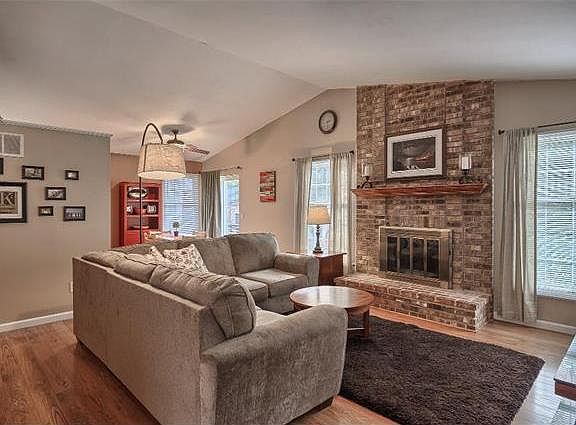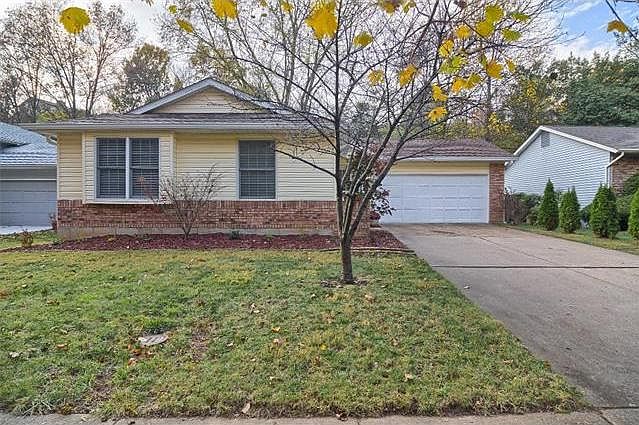 Don't miss your chance at this adorable 2 bedroom, 1 bath open floor plan Ballwin home! Nothing to do here but move in. Nice sized kitchen with solid cherry cabinets, plenty of counter space, pantry, ceramic backsplash and some newer stainless appliances! If you like plants or growing your own herbs, you'll love having the garden window in kitchen! Some updates include newer roof, newer HVAC, newer flooring, white 6 panel doors/hardware, and carpeting in the bedrooms! Large great room features cathedral ceilings, plant shelf and a brick to ceiling wood burning fireplace with beautiful mantel. You'll love the nice sized master bedroom complete with a large walk in closet. Large fenced back yard offers a deck and a garden area! 2 car garage. Full unfinished basement. HWA 13 month home warranty being offered to buyers! Welcome Home! Offered at $165,000. Showings will start Saturday, November 14th. Be sure to click on the virtual tour link for an interactive floor plan of the home.