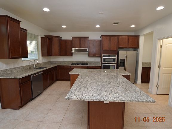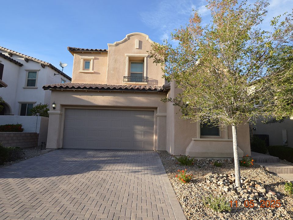 Welcome to this stunning 5-bedroom home located in a desirable gated Summerlin community. This beautifully maintained residence features a spacious 2-car garage, charming front porch, and a covered patio in the backyard perfect for outdoor relaxation. Inside, you'll find a blend of tile and carpet flooring throughout, creating a warm and inviting ambiance. The backyard is thoughtfully landscaped with rock accents and low-maintenance artificial grass. The primary suite boasts a luxurious en-suite bathroom with double sinks, a separate shower, and a soaking tub. The heart of the home is the modern kitchen, complete with a center island and sleek stainless steel appliances ideal for both everyday living.