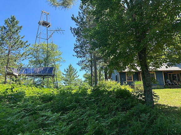 NEW PHOTOS ADDED -- SHOWINGS BEGIN SATURDAY, JULY 5TH!This stunning 36-acre, one-of-a-kind off-grid 2 bed, 1 bath home offers the perfect blend of peace, privacy, and treetop views. A long, wrap-around driveway takes you 95 feet above the road to your own self-sufficient haven, powered by solar, wind, and generator systems. Inside, a wood-burning stove creates a warm and inviting atmosphere, with a propane wall heater for backup. Step outside and enjoy the large deck that spans the length of the home, or savor quiet mornings on the covered front porch. A 2-car garage with attached lean-to and multiple outbuildings provide ample storage for all your tools, gear, and outdoor toys. This private retreat is truly turn-key. Move in and start living your off-grid dream in total comfort.