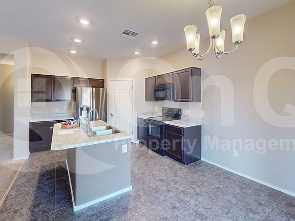 Spacious 2,278 SQ FT two-story home offering 4 bedrooms and 2.5 bathrooms in Marana's desirable Fianchetto Farms neighborhood. The kitchen is equipped with included appliances: refrigerator, oven, microwave, dishwasher, and water RO system, plus a water softener and pantry for added convenience. The inviting living area features plenty of natural light, ceiling fans, and room for entertaining, with carpet and tile flooring throughout. A flexible bonus space provides the perfect option for a home office or den. The primary suite is highlighted by its own thermostat, private ensuite bath, and walk-in closet, while three additional bedrooms and a full bath complete the upstairs. A convenient laundry room comes with washer and dryer included. The home is equipped with an AC unit with three separate thermostats, one for the primary bedroom, one for the upstairs hallway, and one for the downstairs, plus Blink cameras installed on the front porch, entryway, living room, back porch, and side yard gate. Parking is available with a 2-car garage. The backyard features a covered patio, low-maintenance landscape, and desirable North/South exposure. Community amenities include two small playgrounds within walking distance, one directly behind the home by the wash and another two blocks over at the end of the street. Excellent Marana location with nearby schools, dining, parks, and entertainment.