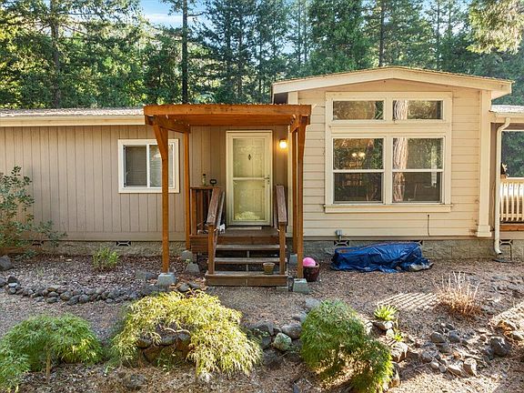 Want to live in the forest, but still be somewhat close to town? This property tucked away near the banks of Little Butte Creek feels private & secluded. With just over 2 acres there is wildlife and peaceful sounds all around. This spacious property offers a fire pit & walking trails near by. The cozy home on the property offers 2 bedrooms plus an office/extra room! 2 bathrooms, one attached to the master bedroom & one guest bathroom. Separate laundry/mud room attached to the kitchen with additional exterior entry from home. Vaulted ceilings, wood floors, and wood burning stove make the home feel open and inviting. Stunning views from the living room and deck. Plenty of space to hangout & entertain guests all year round as the patio is covered. Fenced dog run located on property as well. This beautiful property also offers fresh drinking water from Grizzly Creek with a UV filter system & holding tank. Find your little piece of serenity in this property when you check it out yourself!