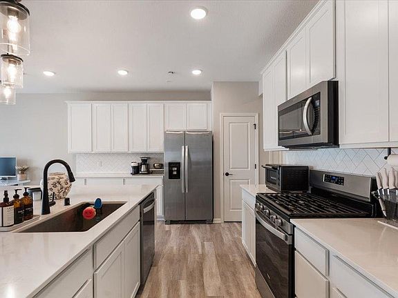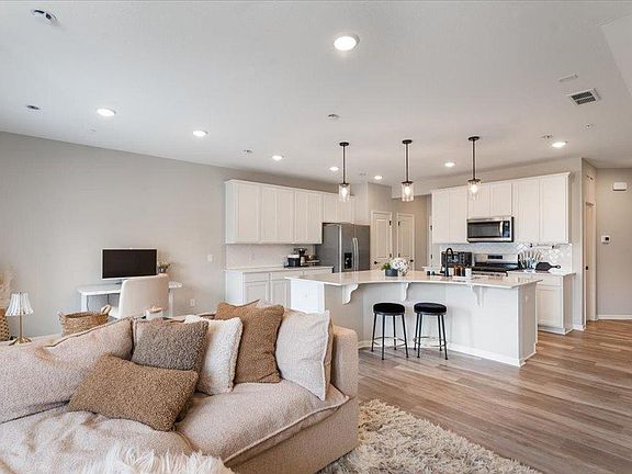 Why wait for new construction when you can have this nearly-new, move-in ready gem now? Welcome to 12273 Ghia Ct NE Unit B — a stylishly upgraded 3-bed, 3-bath townhome built in 2022 by Pulte Homes in the sought-after Revere Park community. This modern BOWMAN floor plan features an entertainer’s dream kitchen with a huge center island, white cabinetry, light Silestone quartz countertops, sleek stainless-steel appliances, and a fresh, airy feel throughout.