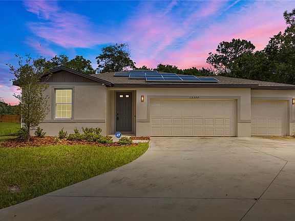 TURN-KEY, FULLY FURNISHED, MOVE-IN READY, SOLAR Panels PAID and INCOME PRODUCING Property! Home was previously a MODEL Home! NO HOA, NO CDD, NO FLOOD ZONE! OVERSIZED quarter-acre LOT with NO rear neighbors and only one side neighbor, this 4-bedroom, 2-bath residence was built in 2021 by Meritage Homes and designed for modern living. The open-concept layout spans 1,840 square feet with a thoughtful split-bedroom floor plan ideal for both everyday comfort and hosting guests. The kitchen is the centerpiece, featuring solid stone countertops, stainless steel appliances, and a large island that flows seamlessly into the dining and living areas. The primary suite includes a walk-in closet and private en-suite bath, while three additional bedrooms offer flexibility for home office space, extended family, or a true short-term rental setup. Outside, an OVERSIZED driveway and 3-car garage provide abundant parking and storage. The backyard is private and peaceful—perfect for gatherings or quiet evenings at home. A major BONUS - seller is paying off the solar panels at closing, delivering long-term energy savings to the new owner. Whether you are looking to expand your investment portfolio with a proven short-term rental or secure a stylish primary residence, this property delivers. Located close to shopping, dining, local attractions, and within an easy drive to Tampa, this home is a rare combination of lifestyle, location, and income potential. Schedule your private showing today and experience this Spring Hill gem before it is gone.