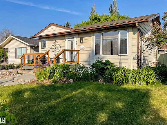 Welcome to Beautiful and Quite neighbourhood of Sakaw! This Single family bungalow features over 3500 sq. ft. of outdoor living. Large deck, French doors on west side, cobblestone and flagstone patios each with fireplaces—plus a 10x12 powered shed/workshop. Massive treed and fully fenced backyard with waterfall, benches, ambiance lighting for night. Front yard has new newly built east facing deck for enjoying morning coffee and beautifully landscaped with Flowers and decorative stones. Inside, enjoy 1,900+ sq. ft. of living space, 2 bed, 2 full baths. The Bright and spacious Kitchen with Island has updated SS appliances and Gas Stove. Hardwood floors, Berber carpet , laminate and tile flooring, open concept, separate dining room, large living area,Upgraded Windows fill home with natural light. Media room in basement with area for office or hobbies. This property seamlessly blends indoor comfort with outdoor luxury. This is your outdoor oasis.