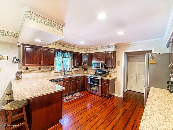 Hurry! This well maintained 4 bedroom 2.5 bath colonial home has everything you need. The first floor boasts a formal living room, formal dinning room, large eat in kitchen with quartz countertops and stainless steel appliances, a sunken den off the kitchen with a wood burning fireplace, and a half bath. Upstairs the master bedroom features a walk in closet, updated master bath with double sinks. Three other spacious bedrooms and an updated full bathroom complete the second floor. The finished basement has 10ft ceilings and plenty of room to entertain. The backyard is private and tranquil. Large covered deck, hot tub, inground salt water pool, fire pit, outdoor shower, shed and child play area with electric. Large 2 car garage with work area. Close to beaches, highways and reservoir