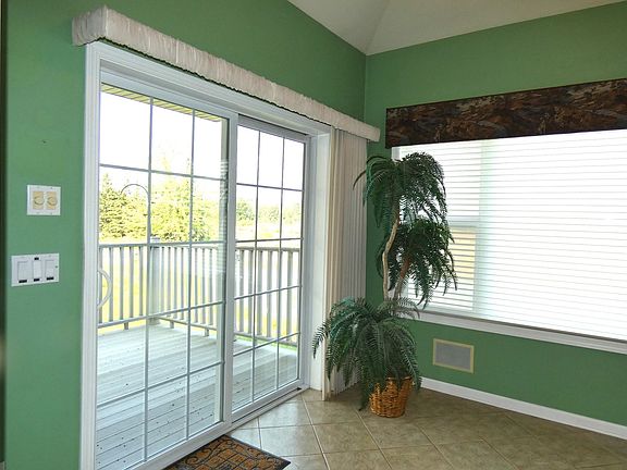 Find easy Living in this 2 Bedroom Ranch Style Condo. Open Concept offers spacious kitchen with breakfast bar overlooking living room. Vaulted ceilings and abundant windows welcome you and invite you to the relax in front of the gas fireplace. Enjoy the morning sun in the four season sunroom with tray ceiling overlooking the pond and giving access to the deck. Split bedroom design with primary bedroom boasting tray ceiling, bath with dual sinks, tub and walk in closet. Second bath is conveniently located near BR 2, Kitchen and 1st floor Laundry. Lower level awaits your plans with egress window and stubbed for bath. Great location near restaurants, shopping and easy hwy access.