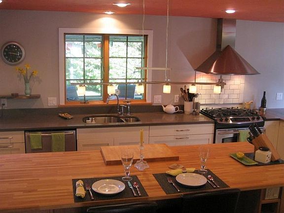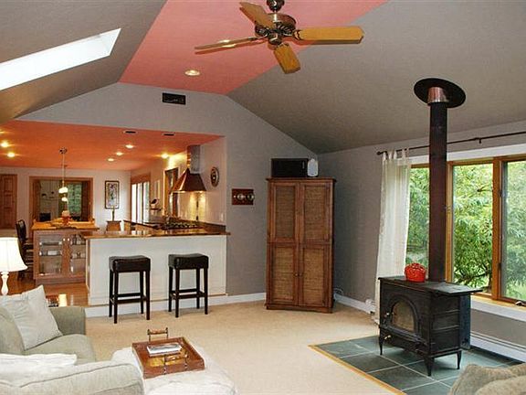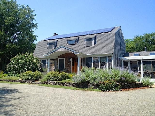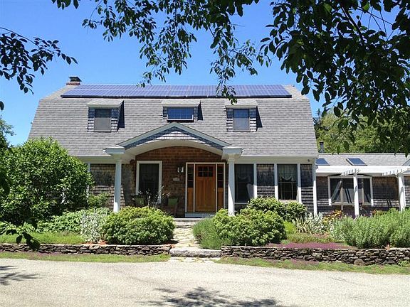 This is it! Imagine a bright and roomy, energy efficient 4 bedroom home with an in-law apt. set on 1.25 private acres, with perennial gardens, & adjacent to walking trails that lead right to the water's edge.This tasteful home will be a sanctuary for your family, and a perfect spot to entertain friends. The newly remodeled custom designed master bath and gourmet kitchen feature custom hardwood cabinetry, high-end Grohe fixtures, and warm radiant slate floors in the spa bathroom. Creating indoor/outdoor living, the home has a sunny front porch perfect for morning coffee, a screened porch & deck for summer dining, plus a pergola. Solar panels, wood stove, and fireplace offer less fossil fuel dependency and very low utility bills. The floor plan is flexible, offering privacy and the luxury of 2 master suites, 1up/1 down.