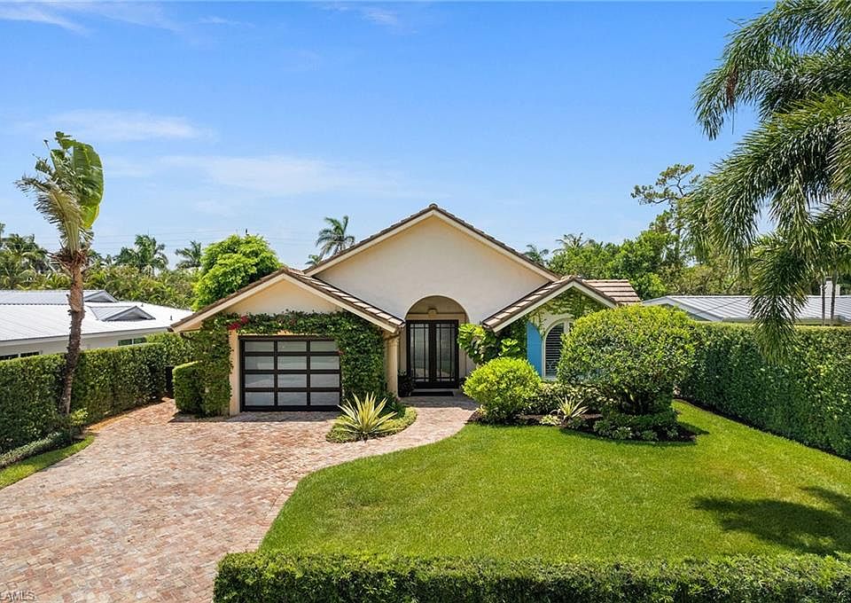 Centrally located in the City of Naples and minutes to historic 5th Avenue !This fully fenced spacious 3 bed and 3 bath residence was completely rebuilt and remastered in 2005. The open great room plan with soaring ceilings and custom kitchen cabinetry is every entertainer's delight. Kitchen equipped with high-end appliances, wine cooler, wine rack, and built-in reverse osmosis. Water softening system throughout the house .Elegant touches in every part of the entire home: Legrand system, custom window coverings, Robb & Stucky custom furniture, ample storage w/custom closets in all bedrooms: built-ins and epoxy floor in the air-conditioned garage. A retractable insect screen installed over the garage door keeps the space impenetrable to the critters. Property is located in the X -flood zone