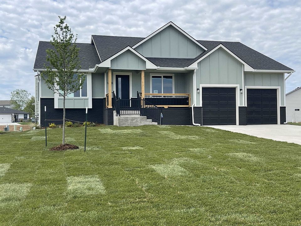 New home! Start with the 3+ tandem garage for you car lovers, walk into the open concept living with electric fireplace, kitchen island with eating bar, and granite countertops. Head downstairs to enjoy the large family room with wet bar, bathroom, and two bedrooms. Outside includes covered deck, sprinkler system, irrigation well, sod and landscaping. This home has it all for everyone in the family. Models open daily 1-5 or by appointment
