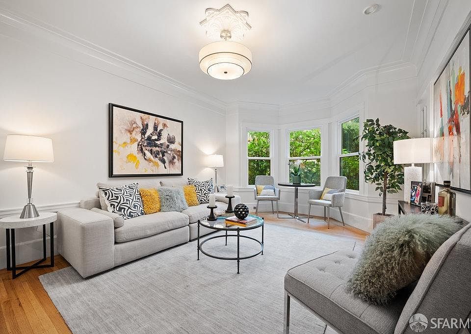Situated in the heart of one of San Francisco's most coveted neighborhoods, this enchanting Edwardian condominium in Alamo Square offers a blend of classic charm and modern convenience. The entire unit is light and airy, creating a warm and inviting atmosphere throughout. The home features two serene bedrooms, including a primary suite that boasts a huge cedar-lined closet and windows looking out to verdant trees, offering both ample storage and a soothing view. The beautifully appointed kitchen is a chef's delight, equipped with stainless steel appliances, sleek quartz countertops, ample cabinet space, and generous counter space perfect for preparing gourmet meals.  The expansive living room, with windows framing lush greenery, provides a tranquil retreat to unwind. Additional features include new windows that enhance the home's brightness and an in-unit washer and dryer for ultimate convenience. Set on the quieter side of the building, this residence includes abundant closet space, a spacious storage room, and access to a peaceful shared garden.  Located in a charming six-unit boutique building with low HOA fees, this home offers a unique sense of community and affordability. Step outside to discover a culinary paradise, with an array of nearby restaurants, cafes, and bars.