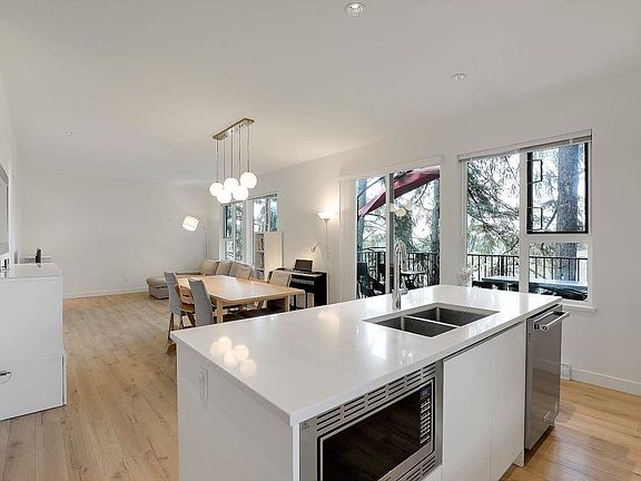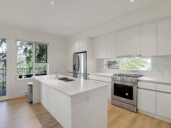 Welcome to Aalto by Intracorp — a quality-built, centrally located 4-bed, 3.5-bath duplex. Enjoy bright south-facing living and dining areas, an oversized kitchen island with seating, and chef-grade KitchenAid appliances with modern cabinetry and stone countertops. Upstairs features 3 bedrooms and 2 full baths. The lower level includes a large rec room with balcony access, a guest bedroom, and full bath. Side-by-side double garage is EV-ready. Walk to schools, parks, trails, shopping, and SkyTrain. School catchment: Walton Elementary, Scott Creek Middle, Gleneagle Secondary.