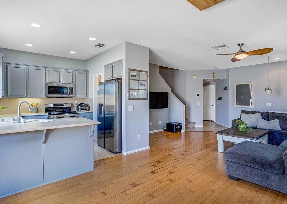 Welcome to 1228 Stagecoach Trail Loop, a well-maintained townhome located in the gated Sycamore Ridge II community. This charming two-story residence features solid bamboo flooring throughout the main living areas and a spacious kitchen complete with corian countertops, matching backsplash, and a walk-in pantry. The home offers vaulted ceilings on the second floor, central air conditioning, and ceiling fans for year-round comfort. Enjoy a private, landscaped backyard ideal for relaxing or entertaining, as well as the convenience of an attached one-car garage with an in-unit washer and dryer. Community amenities include two pools, a spa, two clubhouses, and access to nearby walking and biking trails. Centrally located close to shopping, restaurants, schools, and the Eastlake Greens Golf Course.