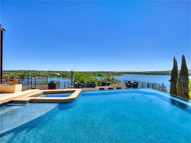 Commanding WATERFRONT Estate w/a clean, modern design. Walls of glass in the Great Room & Master showcase extensive Outdoor Living & Dining areas + a Negative Edge Pool w/Hot Tub - LOTS of sun deck area, too! Access the Custom Boat Dock via a motorized Tram. Absolutely STUNNING views & tons of custom architectural details & high-end finishes throughout. Stonehouse Vineyard is next door, Championship Golf Courses just minutes away. Resort-Style Living on Lake Travis for the discerning Waterfront Buyer.