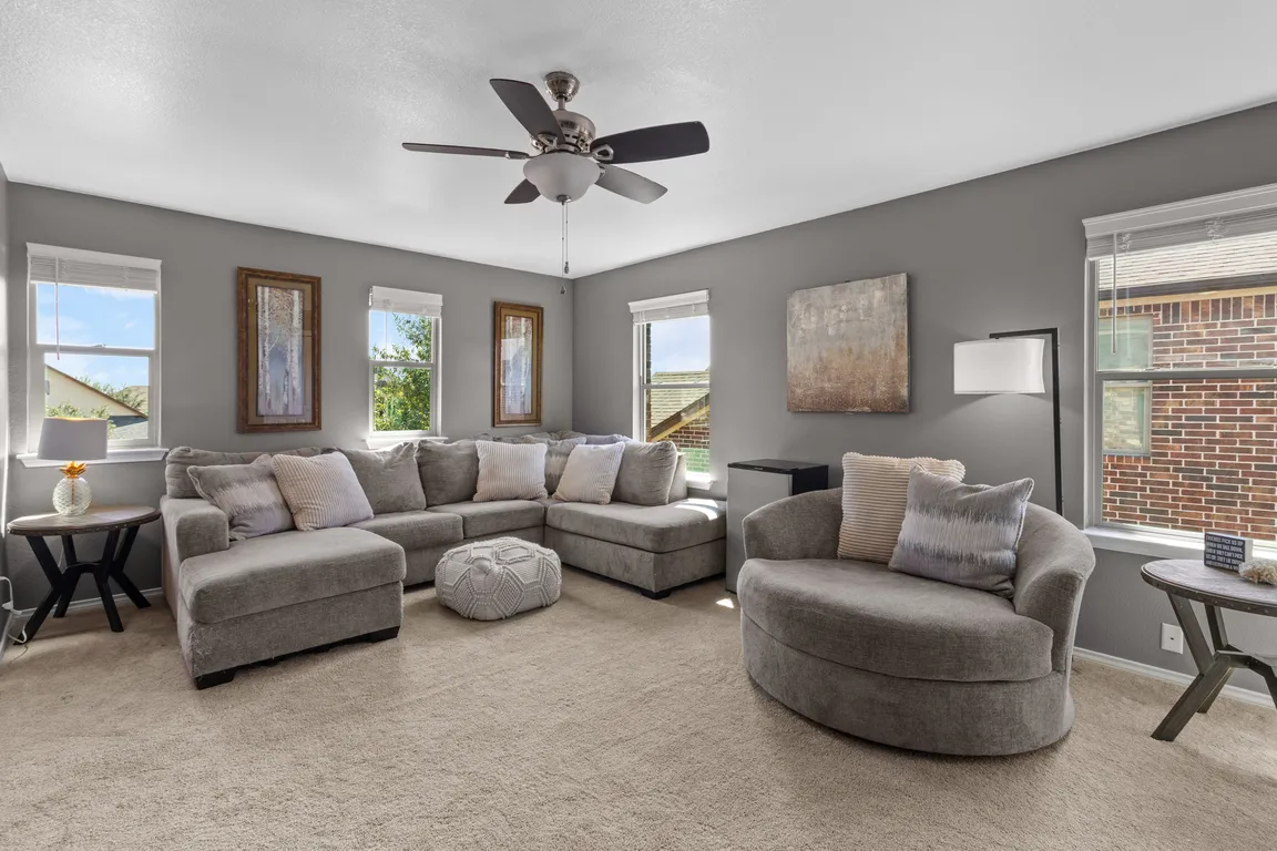 Dedicated officeFresh flooring and paintNew carpetCovered patioUpstairs game roomCustom-tiled bathroom floorDouble vanity