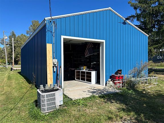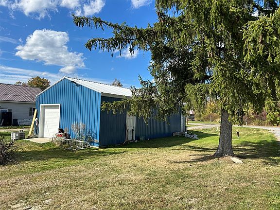 24'x40' garage built in 2020. Garage has concrete floor, 2-man doors, 2-overhead doors (14'x8' & 8'x8'), and 100 AMP electrical service. Public sewage (currently disconnected) & water well on property.