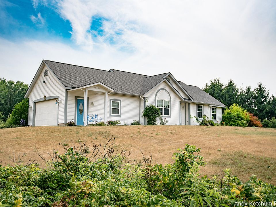 Escape to your own private haven on 24 sprawling acres of mature woods and open fields—ideal for the avid outdoorsman or anyone craving country living. This beautifully updated ranch home combines classic, single-story convenience with all-new modern comfort.