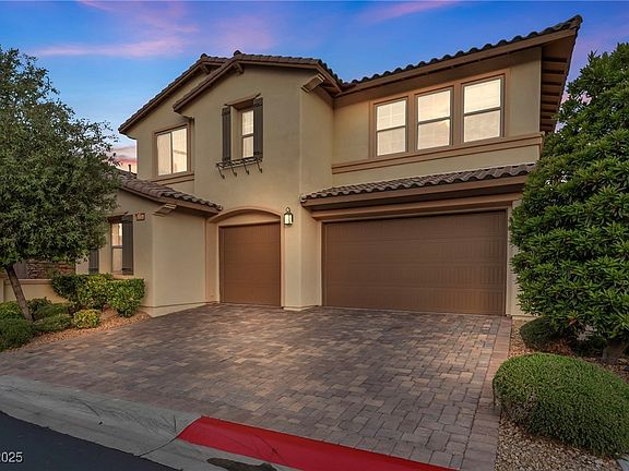 A backyard oasis with rock waterfall pool/spa & built in bbq terrific for entertaining. In Las Vegas- Summerlin- Esperanza gated neighborhood, a terrific great room floorplan. Bed & bath downstairs used as a guest room or office. Kitchen with custom cabinets, stainless steel appliances including refrigerator has granite countertops and is open to a dining area & large family room with fireplace. Also a wet bar area & huge walk in pantry. Upstairs you will find a massive primary bedroom with a balcony that overlooks the majestic red rock mountains. The primary bathroom has dual sinks a huge shower & separate tub & a custom walk in closet. There is a large loft upstairs with a pool/ping pong table that can stay for your entertainment. Separate upstairs laundry room with front loader washer and dryer. The additional 3rd and 4th upstairs bedrooms are almost as large as the primary bedroom. This home has a 3 car garage & paid off solar panels that saves hundreds of dollars in energy bills.