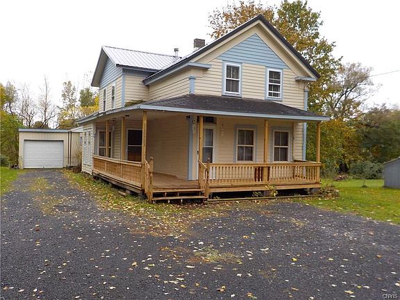 Affordable 5 bedrm home newer bath, birch eat in kitchen with all appliances, back room with attached 1 1/2 car garage extra large formal dining room, living room, 2 bedrms downstairs and 3-4 bedrm upstairs, open wrap around porch, all on approx. 1 acre with a stream running through back yard.