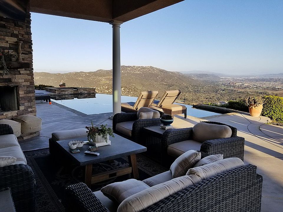 Beautiful 4 bedroom 5 bathroom home with a open floor plan travertine floors and incredible view of the Temecula Valley. Lots of eminities like infinity pool and spa, home gym, spa room with sauna. Entertainment room with built in bar with granite counter top and walk in wine cellar. Home office with separate entrance.. Pool deck has covered patios and out door fire place. RV garage, and gated driveway. Perfect house for resort lifestyle.