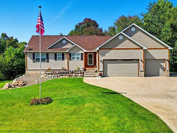 Enjoy nearly 4 acres of peaceful privacy on a quiet cul-de-sac in this beautifully maintained 4-bed, 3-bath home! The bright, open main level welcomes you with large windows that flood rooms with natural light. The kitchen’s granite counters, energy-efficient appliances, walk-in corner pantry and island with breakfast bar make meal prep and casual entertaining effortless. Main-level laundry adds everyday convenience, and the primary suite offers a walk-in closet plus a private bath with soaking tub and separate shower for real relaxation. The newly finished walk-out lower level expands your living and entertaining options with a huge family room, wet-bar hookups, surround sound, tray ceiling lighting and smart-home wiring — it opens directly to a lower patio for easy indoor/outdoor flow. Step outside and you’ll find space to relax, entertain, and play — from the composite deck overlooking a serene yard with a peaceful pond view, to the brick-paver fire pit perfect for evening gatherings, and even your own 9-hole frisbee golf course that winds through the property and neighborhood. With a heated 3-car garage, RV parking, and thoughtful updates throughout, this home combines modern comfort with exceptional indoor/outdoor living!