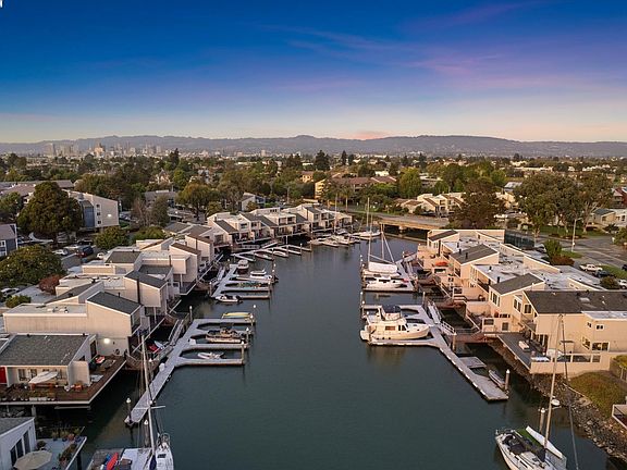 A rare waterfront opportunity on Alameda’s coveted Ballena Bay, this upgraded 4BD/2.5BA contemporary townhome offers exceptional island living with a private deep water boat slip. From the enclosed front patio, step inside the 2452 SQFT home’s spacious and flexible living area, beginning with a large eat-in kitchen and den. Nearby, the formal dining room is connected with a passthrough to the kitchen. Dine with a view of the bay framed by the wall of windows and glass doors in the adjacent living room. Open the doors onto the deck to relax with family or entertain friends with calming waters all around you and your own private dock just steps away. The home’s lower level is complete with a powder room, laundry room with sink, and interior access to the garage. Gorgeous hardwood floors span upstairs where two sunny bedrooms with custom closets share a full bath with a dual vanity. One has glass doors onto a front balcony. Currently configured as a huge primary suite, a wall in the third bedroom can be restored to create a fourth. The rooms have fabulous bay views, and the primary bedroom has an ensuite bath, walk-in closet and a deck. Explore the vibrant island life including: Webster Street, farmers market, the ferry, Transbay bus, Crown Beach, great schools, and shoreline trails