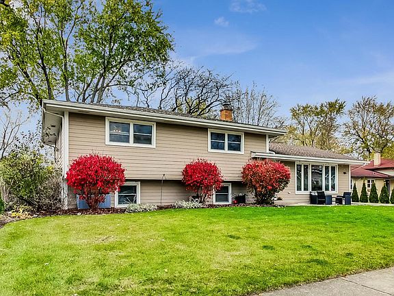 Discover the charm of central Naperville living in this delightful East facing 4-bedroom, 2-bathroom split-level home, offering 2,433 square feet of space on a .23-acre lot in the sought-after Moser Highlands neighborhood. Surrounded by mature trees and lush landscaping, this home seamlessly blends comfort, tranquility, and convenience. Inside, you'll find spacious rooms with thoughtful updates, including two fully renovated bathrooms and four generously sized bedrooms. The walk out/up lower level offers an expansive family room with the potential to create a fifth bedroom, making it a versatile space for your needs. The kitchen is equipped with newer stainless steel appliances, complemented by fresh butcher block countertops and also has access to the rear yard. A hidden asset for this home is the hardwood flooring found under the carpets (visible in the closets). Recent upgrades ensure peace of mind, including newer A/C (2020) and furnace (2018), durable Hardie board siding, modern lighting, and a newer sump pump system with backup. The detached 2-car garage has been completely revamped with epoxy flooring, and the backyard features a large wooden deck, recently extended with a beautiful concrete-stamped patio. A privacy fence with solar-powered lighting completes the outdoor oasis, perfect for relaxing or entertaining. Located within the highly regarded Naperville 203 School District, this home is just minutes from Elmwood Elementary, Lincoln Junior High, and Naperville Central High School. Enjoy the convenience of Trader Joe's, Casey's Grocery, and Starbucks all within walking distance, while outdoor enthusiasts will appreciate the nearby DuPage River, Gartner Park, Springbrook Prairie, and Naperville's extensive bike trail system. With Edward Hospital less than a mile away, and downtown Naperville's vibrant dining, shopping, and entertainment scene just two miles from home, you'll have everything you need right at your fingertips. Commuting is easy with quick access to commuter trains and major highways. This home is a true gem in a prime location and is ready for you.