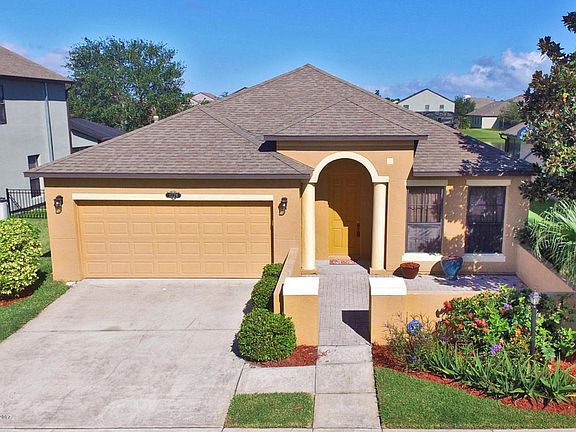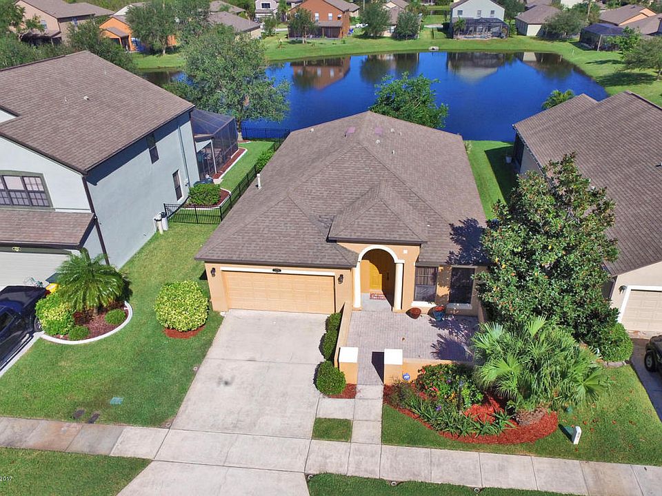 Welcome home to this 1,720 sf, 4 bedroom, 2 bath home with an open floor plan and outstanding water view. The master suite also has great views of the water, walk-in closet, double sinks, tub & shower. Kitchen features an island with bar, stainless appliances and pantry. The spacious living room has built-in shelving, large windows and view into the front bedroom or home office. Relax in the screen-enclosed back porch or open patio area in the front, surrounded by mature trees, palms, and many flowering plants. Home features a security system and sprinkler system. Conveniently located to schools, shopping, dining, churches and entertainment just one block from McKnight Family Sports Complex and a short distance to McLarty Park.