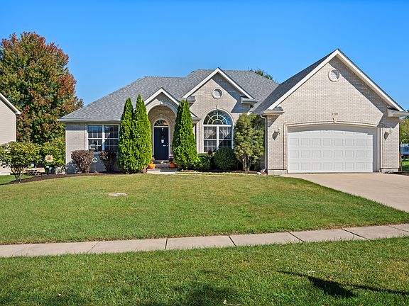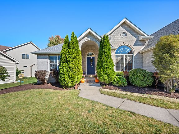 Proudly introducing an exquisite Foxpointe ranch home showcasing cathedral ceilings, dramatic window displays, and a see-through classic living room and hearth fireplace! You will fall in love at first sight with the visual charm of this custom home's elaborate roof design (new roof shingles in 2023!) and an authentic, sheltered arched brick entryway with a timeless feel. Find your peace, right in your backyard retreat, presenting a brick paver grilling patio and step-down circular patio, inspired by abundant landscaping. The 10-foot ceiling and elliptical window welcome you into the foyer area. The Dining Room is a favorite gathering space displaying a grand elliptical window, a 12-foot multi-tiered ceiling, a graceful luminaire, and a luxury color palette. Gleaming hardwood flooring, white millwork, white paneled doors, and volume ceilings continue into the elegant Living Room featuring new sculptured carpeting, transom windows, and an angled two-way tile surround fireplace with gas lit logs and white mantle. The kitchen boasts an inviting hearth area with a sun-filled window nook. Warm up to the cozy fireplace while enjoying a cup of coffee with a special friend or an inspiring book. Tiered maple cabinetry, pantry with pull-out drawers, stainless steel appliances, dovetail drawers, high arched faucet, within fresh neutral painted walls, complete this chef's delight kitchen. A laundry room with tiled flooring, shelving, and future plumbing for a utility sink is located conveniently off the insulated and painted 2-car garage. The gorgeous primary bedroom hosts a 9-foot tiered ceiling, a walk-in closet, and a spa-like private bath. For a tranquil experience, soak in the whirlpool tub with a glass block feature wall. There is a separate shower, 2 sinks, ceramic tile flooring, and a private water closet to enhance this owner's suite! Our popular floor plan provides a split bedroom arrangement. All bedrooms come equipped with ceiling light fans and window blinds, with a full shared bathroom and linen closet nearby. The full unfinished basement is partially framed with rough-in plumbing and two egress windows for easy future expansion! Architectural new roof shingles in 2023, Andersen white painted windows, copper plumbing, Lennox 96% energy efficient furnace (new 2023), Lennox central air system (new 2023), power-vented water heater (new 2023), Aprilaire humidifier, and a passive radon system add additional value to the stunning and immaculate property. The Foxpointe community is near the downtown area and located close to walking/bike paths, parks, shopping, restaurants, and schools. This is a wonderful opportunity to LOVE your new HOME and your new COMMUNITY!