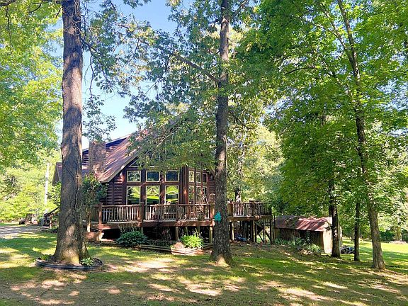 Discover a true Ozark gem just minutes from the White River: this stunning log-style residence at 1229 Buford Spur sits on approximately 10.44 unrestricted ac m/l and delivers 3,089 sq ft of rustic elegance. Inside you’ll find an open-concept living/dining/kitchen area with vaulted wood-beam ceilings and a stone fireplace anchoring the space, while upstairs features a luxurious owner’s suite with a loft, jetted tub, separate shower, large walk-in closet and a private deck overlooking your wooded sanctuary. On the main level you’ll also find two additional bedrooms, a full bath with soaking tub, and a full finished walk-out basement with den, kitchenette, bath and non-conforming bedroom. Outside, entertain on the wrap-around deck or unwind in the hot tub beneath the pergola as deer leisurely roam the trees and a huge seasonal creek adds peaceful ambience. With log siding, peaceful seclusion and yet directly accessible to outdoor recreation, this place is ideal for buyers wanting refined
