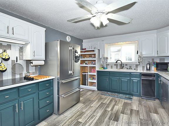 A BEAUTIFULLY maintained and updated craftsman style home located in Okmulgee, east of Highway 75. This home boasts 2 bedrooms with 2 full baths and a bonus room perfect for an office or craft space! When you arrive at this home, the first thing you'll notice is a perfectly manicured yard and a wide driveway leading to the deceptively large, finished 2 car garage with a new electric overhead door. Inside is a spacious living area that guides you into a tastefully remodeled kitchen with plenty of room to cook, soft-closing storage and a built-in Lazy-Susan. Includes a new HVAC system and dehumidifier, new storm windows, insulated front door, double insulated walls and attic. You'll enjoy the benefits of a lower monthly electric bill as well, thanks to the installation of solar panels! No need to clean out your gutters with the closed gutter system! This home has been loved dearly and wonderfully preserved to keep some original, small town charm. Whether you're looking to relax on your spacious front porch, or need to stay close to OSU-IT, this home is perfect for you!