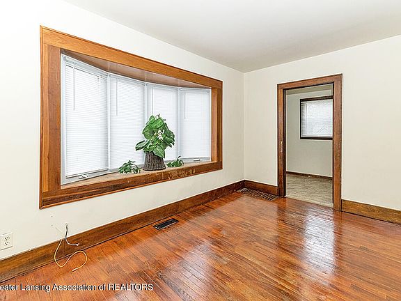 Tucked in the Walsh/Potter Neighborhood you'll find this classic cape cod with beautiful natural woodwork throughout. Enter the foyer which leads to the formal living room with a bay window that provides lots of natural light. The kitchen has a tiled backsplash, newer appliances, and new flooring. Formal dining room, 2 bedrooms and a full bathroom round out the main floor. Upstairs you'll find a flexible room with new carpeting. This could be used as a home office, den, or 3rd bedroom. Lots of storage as well. New water heater, furnace is set up for a/c, there's newer plumbing and newer windows! Shed in the backyard provides additional storage for your bikes or yard equipment. Close to Allen Street market, minutes from MSU, Potter Park and REO Town!