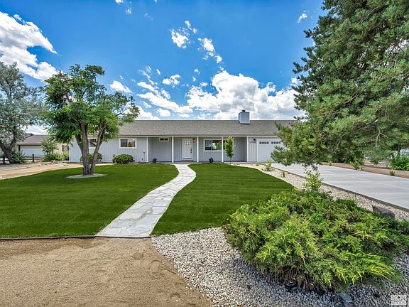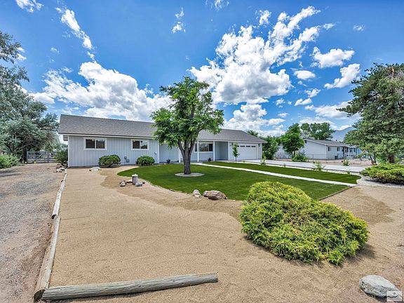 Discover your dream home in the heart of Carson Valley! This fully remodeled 3-bedroom, 2-bathroom home is located in a highly sought-after neighborhood and offers breathtaking views of the Carson Range.,   Everything in this home is brand new, including the roof, windows, flooring, interior and exterior paint, garage door, appliances and more! The spacious bedrooms are designed for comfort, with the primary bedroom featuring a walk-in closet. The bathrooms are completely updated with modern fixtures and finishes, enhancing the home's contemporary charm. Embrace the beauty of the newly landscaped front yard, complete with automatic sprinklers for easy maintenance. The brand new driveway enhances the home's curb appeal, welcoming you to your personal mountain retreat. Situated on a generous 1-acre lot, this property is perfect for 4H projects or horse enthusiasts, offering ample space for various outdoor activities. The expansive lot provides endless potential for additional builds or expansions. Imagine creating your own custom barn, workshop, or even a guest house, all set against the stunning backdrop of the Carson Range. Enjoy the serene and picturesque setting, where you can savor crisp mountain air, wide open spaces, and the tranquility of high desert living. Whether you're looking to relax or entertain, this home offers the perfect blend of modern amenities and natural beauty. Don't miss out on this incredible opportunity to own a piece of paradise in Minden. Schedule your showing today and experience the charm and beauty of this remarkable home!