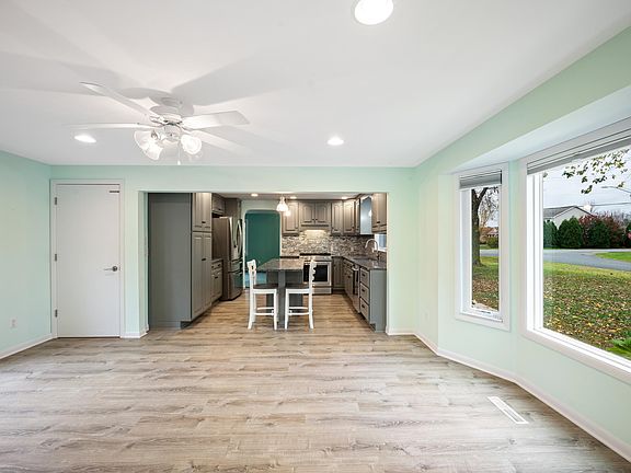 Excellent brick single story w/ impressive custom kitchen! You'll love this home! Everything you need on 1 level plus there's a large clean useable basement! You'll be delighted with the spacious living room w/ hardwood flooring under the carpet & separate formal dinning area. Next the newer kitchen w/ quartz counter tops, SS appliances, center island, custom tile back splash, loads on storage & extras all opening to the relaxing family room w/ doors to the relaxing 16 ft back deck. Much natural light & wall mounted TV stays! Directed access to attached 2 car garage, PLUS remodeled bathroom (2022) wrapped in tile w/walk-in shower. Extras include: 1st floor laundry, hi-effc gas furnace (2021), replacement windows, basement waterproofing system. All dimensions & sizes approximated only.