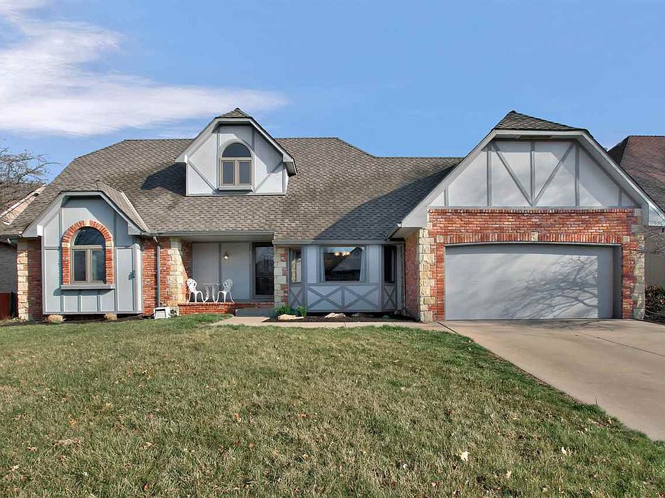 Maize Schools! No SPECIALS! Very nice updated 1 1/2 story home in Walnut Creek with 4 bed, 3 1/2 baths, a finished basement with bar and theater room & a Tandem garage that is 20 x 31, great additional space for extra storage/workshop. Main floor Family room has vaulted ceiling & wood floors & a wood burning fireplace and great windows. Formal dining room has wood floors also with large window overlooking the back yard. Spacious Kitchen with nice eating space and island & stainless steel appliances a travertine back splash with quartz counter, under counter lighting and tile flooring & a built-in desk Laundry room is a separate room with additional pantry space. Large main floor master bedroom with a Master bath & his and hers walk in closets. The master bath has double sinks, a large corner tub and a separate shower. The upper level features 3 bedrooms and a loft area with a bonus space & a full bathroom. Full finished basement with dry bar a gas log fireplace, theater room and two additional finished areas and a full bathroom. Covered deck and a flag stone patio with a view to the common area & access to neighborhood playground, pond, swimming pool, tennis court park, 9 hole pitch and putt golf course and creek with footbridge. The roof 5 years old and there is New carpet in main and upstairs bedrooms/hall. Locate just 5 minutes from New Market Square. Great family home.