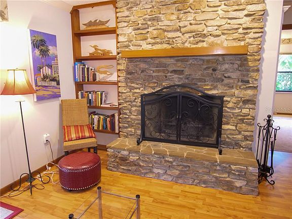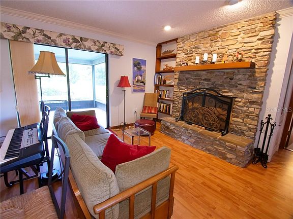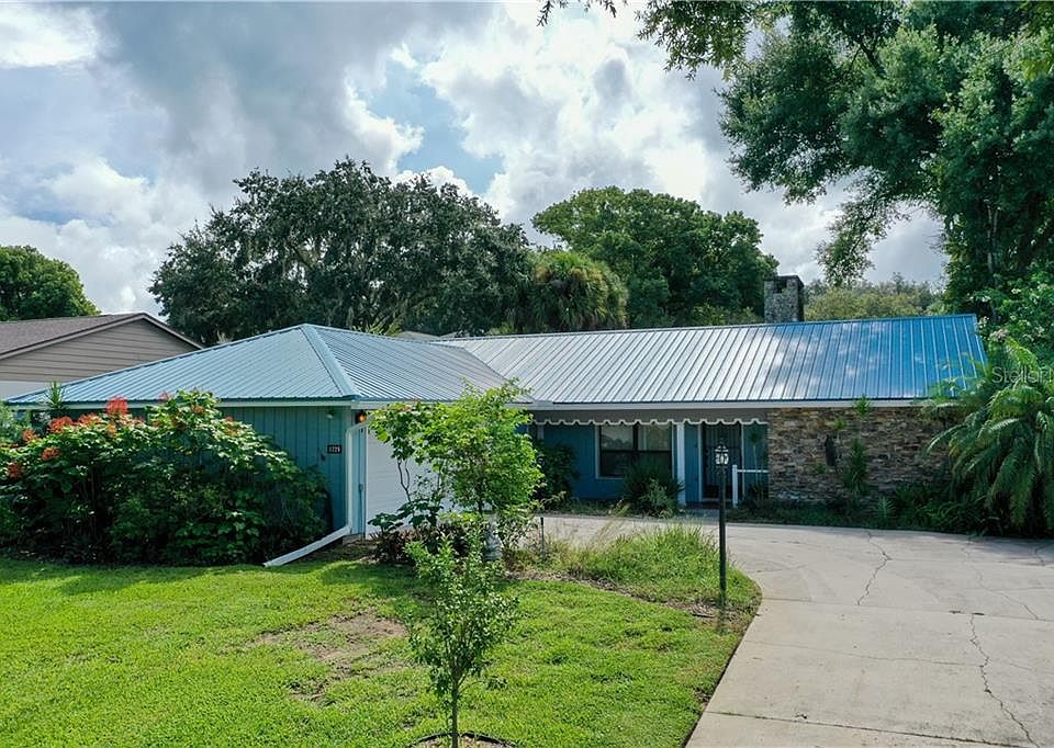 Welcome to the Neighborhood. This 2 bedroom 2 bath home has all the charm and character you could hope for, all under a new metal roof. Before walking thru the front door be sure to look up at the hand painted ceiling and look back at the fruit bearing trees and tasteful landscaping and view of lake Eustis! Beautiful stone fireplace in a large and open family room. Dining room takes you right into a large galley kitchen with breakfast nook and indoor laundry. Two separate sets of sliding glass doors take you out to your own oasis inside the screen-in lanai. Custom ceilings again surrounded by lush and private landscaping! Enjoy a stroll down the street to the community waterfront park and HOA dock or up the hill to the City Tennis Courts. Desirable location, minutes from downtown Eustis, Tavares and Mount Dora. Less than 2 miles to Publix and shopping. Brand new Pinecrest Academy is less than a 5 minute drive. Easy access to HWY 441 and Wekiva Parkway.
