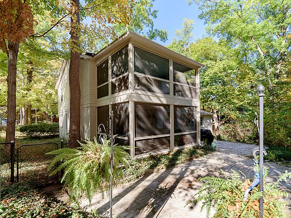 This home is located in the sought after Cool Creek neighborhood, tucked into a peaceful, wooded setting surrounded by mature trees & lush greenery. It offers privacy, serenity & a low maintenance lifestyle with no lawn care required! Step inside & you will find the perfect blend of warmth & functionality. The inviting floor plan features a formal dining room ideal for hosting gatherings, & a bright kitchen w/breakfast area overlooking the backyard. The expansive great room is the heart of the home, complete with a cozy fireplace & custom built-in shelving-an ideal spot to relax or entertain. Upstairs you will find three bedrooms in addition to the master suite with it's own private porch! The finished basement offers great flex space for entertaining or relaxing, featuring a wet bar! There's plenty of room for a media or recreation area, along with generous storage space. You will love spending quiet moments in the spacious screened in sunroom or step outside onto the large patio with inground grill & enjoy all that nature has to offer! Great location! Roof 2020, furnace 2024, driveway recently sealed & exterior wood painted.