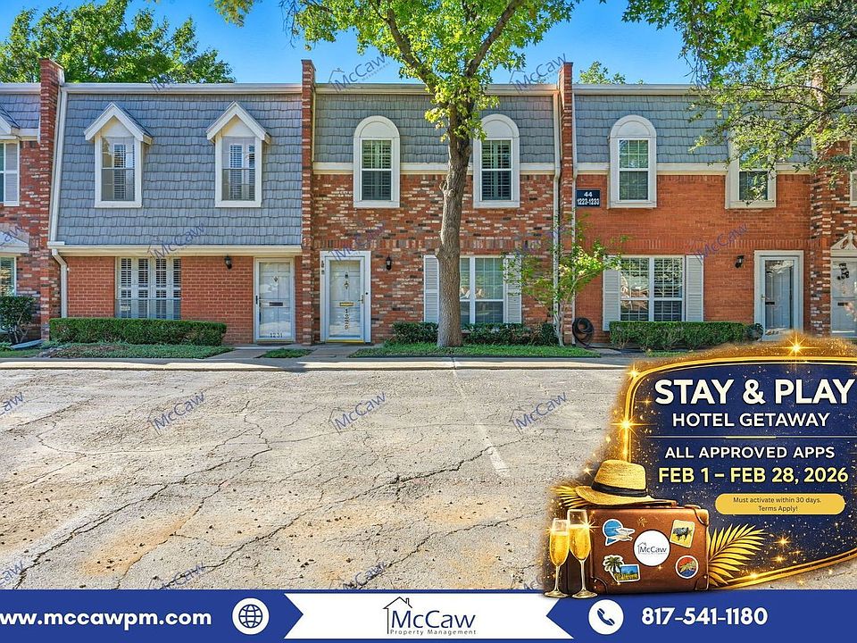 Discover serene living in this charming 2-bedroom, 2.5-bath townhome in the peaceful Indian Creek neighborhood. Enjoy morning coffee on your private balcony, stroll the tree-lined streets, or relax by the community pool. This quiet, gated setting offers safety and privacy while keeping you close to Fort Worth's Botanic Garden, museums, and local shops. With hardwood floors, granite counters, and stainless-steel appliances, every detail has been designed for comfort. The two spacious upstairs bedrooms each have their own bath, perfect for guests. Covered parking, tennis courts, and small-dog-friendly policies make this a comfortable and convenient place to call home.