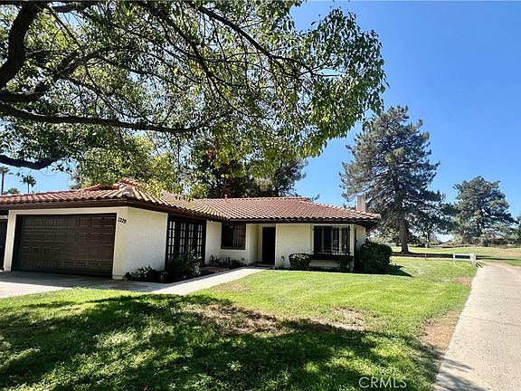 This stunning, move-in-ready home in the highly desirable 55+ Seven Hills Golf Resort showcases panoramic golf course views from nearly every room and offers easy access to the pool and spa, Diamond Valley Lake, Temecula wine country, Palm Springs, snow-covered mountains, and the Idyllwild music scene—with San Diego, Los Angeles, and the Pacific Ocean just down the freeway. Featuring approximately 1,568 sq ft of living space, the home boasts beautiful hardwood flooring in the entry, hallways, and guest bathroom, freshly painted interiors with acoustic ceilings removed, three bedrooms, two bathrooms, and an oversized two-car garage with laundry area and French doors that open to the exterior—ideal for an office setup. The concrete driveway accommodates up to four vehicles, while the spacious living room offers cathedral ceilings and a gas log-burning fireplace. The kitchen is equipped with ample cabinetry, upgraded quartz countertops, gas cooktop, built-in oven and microwave, dishwasher, garbage disposal, and refrigerator, with corner windows above the sink framing serene golf course views. A formal dining room with lighted ceiling fan, sliding glass doors, and custom wood shutters opens to a covered back patio perfect for entertaining. The master suite includes a lighted ceiling fan, sliding glass doors with custom wood shutters, mirrored wardrobe closet doors, and a master bath with tile countertops, dual vanity sinks, and a step-in shower stall with handicap grab bar. Additional bedrooms include a guest room with wardrobe closet and ceiling fan, and a third bedroom with lighted ceiling fan and golf course views ideal as a den or office. The guest bathroom features a shower/tub combo, tile vanity, and hardwood flooring. With LOW TAXES and HOA FEES of approximately $330/month covering water, trash, exterior landscaping, pool, and spa, and close proximity to shopping, dining, medical facilities, and hospitals, this entertainer’s dream home offers the perfect opportunity to retire in style.