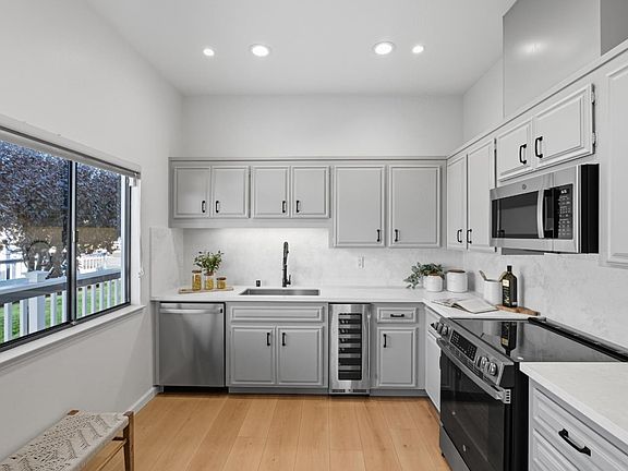 Overlooking the lovely lagoons of Mariners Isle, this stunning 2 bed 2 bath home is the perfect space for anyone! The light filled home is gorgeous, with vaulted ceilings and skylights, overlooking the lagoons with an oversized deck and private dock. Featuring updated floors and designer touches throughout the entire space. Kitchen features all new stainless steel appliances, new countertops, backsplash & hardware. The primary bedroom is a sanctuary, with built in cabinetry, a walk in closet, skylights and direct access to the deck overlooking the water. The primary bath features a new soaking tub and dual vanities. The secondary bedroom features ample closet space and can double as an office. With plenty of parking and an attached 2 car garage with built in storage and washer/dryer. One of the few units on the water also with your own grassy yard space! Low HOA with all the amenities: community grilling areas, pool, spa, optional clubhouse and dry boat storage. On a quiet street with no through traffic, this home is centrally located and has easy access to everything: only mere minutes to 92 and 101, shopping, restaurants, gym and all other amenities. Experience your own luxurious lagoon living in the heart of the Peninsula today!