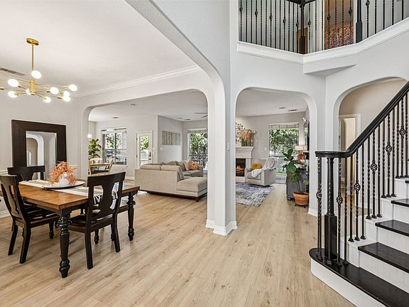 Welcome to this beautifully updated 4-bedroom, 3.5-bath home in the highly desirable Flanigan Hill Estates. You'll love being just minutes from Bear Creek Park, Sky Creek Ranch Golf Club, and numerous shopping and dining options. Great curb appeal set the tone for the rest of the home. Inside, you'll find updated luxury vinyl plank flooring throughout the main level, fresh interior paint, and a modernized kitchen with sleek, new countertops. The spacious open layout is designed for both comfort and functionality and is accentuated by lots of natural light. Much desired primary suite downstairs. Upstairs has a large loft or bonus room. Recent updates include: Upgraded sprinkler system with foundation watering and wifi control (Rachio), wifi thermostats, and wifi garage door. Need a quiet workspace? The detached backyard shed office is fully equipped with electricity, heating, AC, and internet—perfect for working from home.
