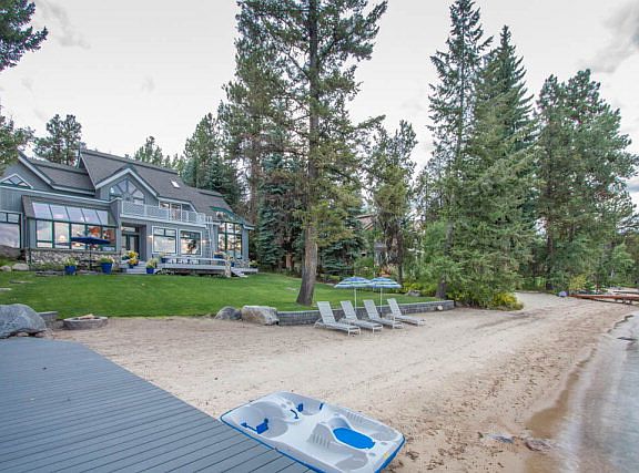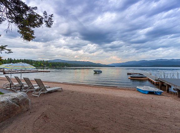 Private Payette lakefront estate on nearly 1 acre in McCall, Idaho. This combination of luxury, privacy and proximity to town is nearly impossible to find. 100' of flat sandy beach with stunning views. The elegant residence features a spacious great room design with expansive distressed heart pine hardwood flooring, a grand stone fireplace and a luxurious main level master suite. 5 bedrooms, 4.5 baths. New roof, new dock and paved driveway. Separate guest suite over finished garage. Incredible value with extensive top-to-bottom remodel completed.
