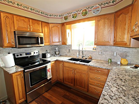 Immaculate and charming 2 story with huge fenced yard overlooking the fields. One owner home with lots of updates. Master suite with private bathroom and walk-in closet. Oversized side load 2 car garage. Newer gutters, front porch, Carrier furnace (2 yrs), sump pump (3 yrs), flooring and landscape. Kraftmade oak kitchen with granite counter tops and all appliances included. 2 pantries. Newer carpeting and plank vinyl floors. Vinyl windows. Security system.