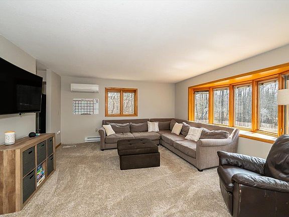 Enjoy the peaceful country living you've been dreaming of—right in the heart of Maple! Tucked at the end of a quiet dead-end road, this charming home sits on 5 scenic acres with stunning views from the back deck. Inside, you'll find a spacious and functional layout. The large entryway is both welcoming and practical, offering plenty of space for coats and shoes. Upstairs, natural light pours into the living room, kitchen, and dining area, creating a warm and inviting atmosphere. Two generously sized bedrooms and a full bathroom complete the main level. The lower level features a third bedroom, a ¾ bath, laundry room, and a spacious rec room with a cozy freestanding gas stove—perfect for relaxing or entertaining. Outside, you'll love the 26x42 detached garage, circle driveway, low-maintenance exterior, sauna, and an incredible yard with room to roam. Don't miss this one—your country oasis awaits!