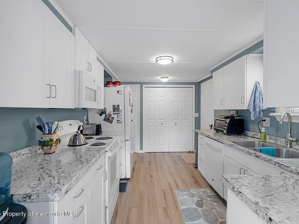 With tasteful custom updates and upgrades throughout, this home boasts an OPEN, MODERN feel. The spacious utility room includes a convenient golf cart garage.