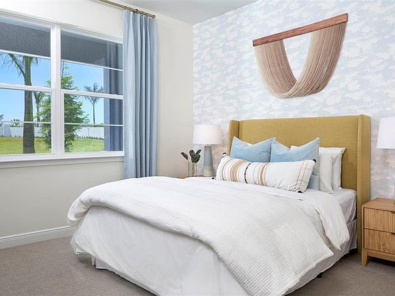 READY NOW – The 2,005 sq. ft. Glades floorplan with a charming Coastal elevation is designed for both comfortable everyday living and effortless entertaining. This 2-bedroom, 2-bathroom home also includes a 2-car garage, a versatile flex room, and a separate study for added functionality. From the welcoming front porch and foyer to the open-concept Great Room, dining area, and kitchen, every space flows naturally. The kitchen features Linen shaker-style cabinets, lightly veined quartz countertops, and a coordinating tile backsplash, while a generous island with breakfast bar provides space for casual meals or gathering with friends while cooking. Oversized glass sliders in the Great Room open to the expansive lanai, offering serene preserve views. The owner’s suite is a private retreat with a raised dual-sink vanity, glass-enclosed shower with high transom window, and a spacious walk-in closet. Bedroom 2 is located at the front of the home, providing privacy for guests, while staggered wood-grain tile throughout the main living areas combines style with easy maintenance, completing this thoughtfully designed home. *** Photos, renderings and plans are for illustrative purposes only and should never be relied upon and may vary from the actual home. Pricing, dimensions and features can change at any time without notice or obligation. The photos are from a furnished model home and not the home offered for sale.
