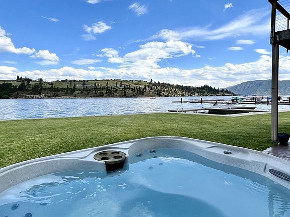 Experience waterfront comfort at this spacious retreat on beautiful Lake Chelan, with scenic water views from most rooms in the house. The grassy yard is steps from the lake and dock, and is great for wildlife watching, or just hanging out. Relax lakefront in the hot tub and enjoy beautiful starry nights.
