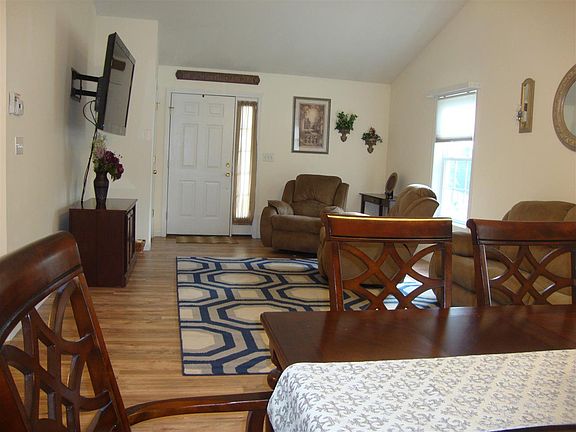 NO MONTHLY FEE! Don't miss out on this pristine 2 bedroom condex with over an acre of land for your outdoor enjoyment. Home features open concept layout with cathedral ceiling in the living room/dining room area opening into fully applianced kitchen. Beautiful hardwood floors, door to deck overlooking side yard AND a 2 car under with plenty of storage area in basement. Washer & dryer hookups on first level for convenience and ease. Perfect for first time homeowner or someone looking to downsize. Convenient to area shopping, restaurants, airport and highway.