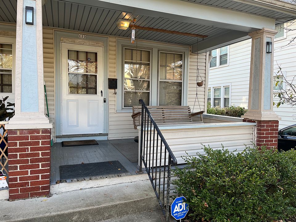 123 East Como is the side with the Cherry Tree. It features 3 bedrooms, 1-1/2 baths with a shower in the basement. Ceiling fans in all rooms and carpet for quiet enjoyment. It was remodeled five years ago. Appliances include: fridge with icemaker, gas stove, microwave, built in dishwasher, washer and dryer. There is a bonus artist room in the basement with a sink. This side opens directly to the shared fenced back yard. It also has one offstreet parking space and a 1 car garage with electric. This is a great neighborhood within walking distance of all kinds of shopping and restaurants. Quick access to I71 AND route 315, you get get anywhere in metro Columbus easily.