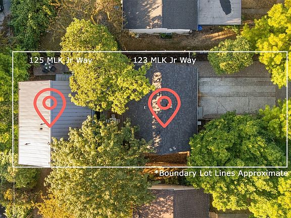Two homes on one lot! Package includes a front home 123 MLK: 3 Bedrooms, 1.75 bath, 1400 SqFt with a den/office nook. Enjoy main floor with hardwood floors, open kitchen design. Lower level primary suite with 3/4 bathroom. Laundry and bonus den/office nook. Newer back deck plus a hot tub, and fenced front yard for garden beds. Back home 125 MLK is a detached DADU 970 SqFt finished and separately fenced: 2 bedrooms on the main + a full bath, open living/kitchen plan, upstairs primary suite with its own walk-in closet & attached bathroom, plus a private patio. Two off-st parking spaces. A smart investment to your portfolio, or perfect for live in one and airbnb the other; or Idea: consider co-housing and buy with your bff! Incredible value!